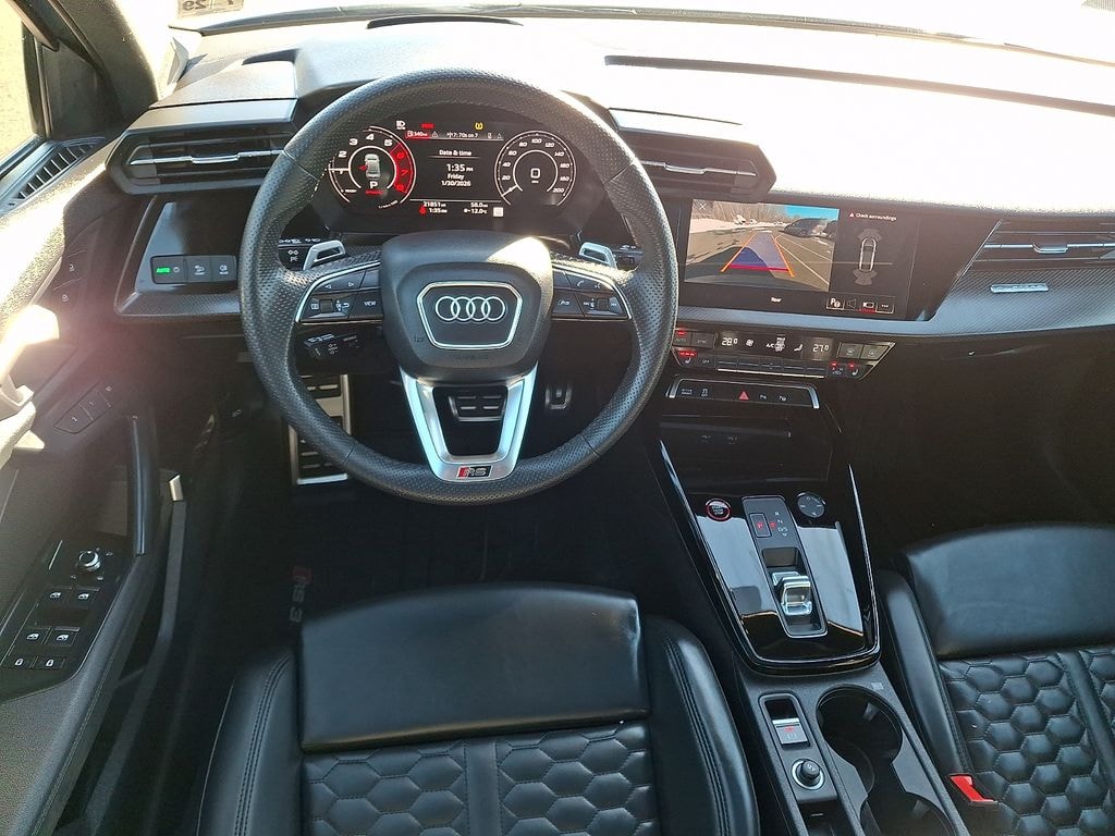 The RS 3's striking exterior design is both bold and refined, with distinctive RS-specific elements like the signature Singleframe grille, flared fenders, and a rear spoiler that enhance its performance-oriented aesthetic. Step inside the cabin, and you'll be surrounded by premium materials, advanced technology, and thoughtful ergonomics that create a truly driver-focused environment.