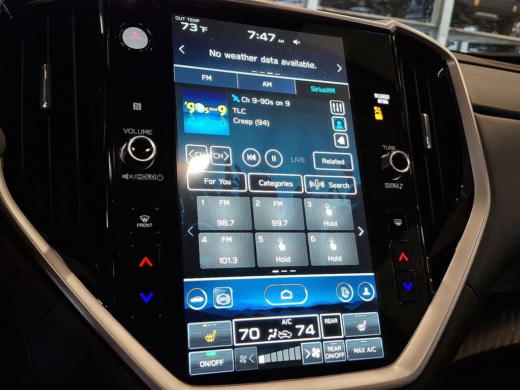 3rd row seats: bench, 4-Wheel Disc Brakes, 6 Speakers, ABS brakes, Air Conditioning, Alloy wheels, AM/FM radio: SiriusXM with 360L, Apple CarPlay & Android Auto, Auto High-beam Headlights, Auto-Dimming Exterior Mirror w/Approach Light, Auto-dimming Rear-View mirror, Automatic temperature control, Brake assist, Bumpers: body-color, Compass, Delay-off headlights, Driver door bin, Driver vanity mirror, Dual front impact airbags, Dual front side impact airbags, Electronic Stability Control, Emergency communication system: MySubaru Safety (3-year free trial), Exterior Parking Camera Rear, Four wheel independent suspension, Front anti-roll bar, Front Bucket Seats, Front Center Armrest, Front dual zone A/C, Front reading lights, Fully automatic headlights, Garage door transmitter: HomeLink, Heated door mirrors, Heated Front Bucket Seats, Heated front seats, Illuminated entry, Knee airbag, Leather Shift Knob, Leather steering wheel, LED Cargo Area Lighting, LED Upgrade, Low tire pressure warning, Occupant sensing airbag, Outside temperature display, Overhead airbag, Overhead console, Panic alarm, Passenger door bin, Passenger vanity mirror, Power door mirrors, Power driver seat, Power Liftgate, Power steering, Power windows, Radio data system, Radio: Subaru 11.6" Multimedia Plus System, Rear air conditioning, Rear anti-roll bar, Rear reading lights, Rear window defroster, Rear window wiper, Reclining 3rd row seat, Remote keyless entry, Security system, Speed control, Speed-sensing steering, Spill Resistant Coated Cloth Upholstery, Split folding rear seat, Spoiler, Standard Model, Steering wheel mounted audio controls, Tachometer, Telescoping steering wheel, Tilt steering wheel, Traction control, Trip computer, Turn signal indicator mirrors, Variably intermittent wipers, Wheels: 18" x 7.5 J Gray Alloy w/Machine Finish.