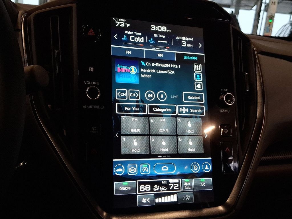 4-Wheel Disc Brakes, 6 Speakers, ABS brakes, Air Conditioning, All-Weather Floor Liners, Alloy wheels, AM/FM radio: SiriusXM, Anti-whiplash front head restraints, Auto High-beam Headlights, Auto-Dimming Exterior Mirror w/Approach Light, Auto-Dimming Mirror w/Compass & HomeLink, Automatic temperature control, Brake assist, Bumpers: body-color, Driver door bin, Driver vanity mirror, Dual front impact airbags, Dual front side impact airbags, Electronic Stability Control, Emergency communication system, Exterior Parking Camera Rear, Four wheel independent suspension, Front anti-roll bar, Front Bucket Seats, Front Center Armrest, Front dual zone A/C, Front fog lights, Front reading lights, Fully automatic headlights, Heated door mirrors, Heated Front Bucket Seats, Heated front seats, Illuminated entry, Knee airbag, Leather Shift Knob, Leather steering wheel, Low tire pressure warning, Occupant sensing airbag, Outside temperature display, Overhead airbag, Overhead console, Panic alarm, Passenger door bin, Passenger vanity mirror, Popular Package #4A, Power door mirrors, Power steering, Power windows, Radio data system, Radio: Subaru 11.6" Multimedia Plus System, Rear anti-roll bar, Rear Bumper Cover, Rear seat center armrest, Rear window defroster, Rear window wiper, Remote keyless entry, Security system, Speed control, Speed-sensing steering, Splash Guards, Split folding rear seat, Spoiler, Sport Cloth Upholstery, Standard Model, Steering wheel mounted audio controls, Tachometer, Telescoping steering wheel, Tilt steering wheel, Traction control, Trip computer, Turn signal indicator mirrors, Variably intermittent wipers, Wheels: 18" x 7.0" J Dark Gray Aluminum-Alloy.