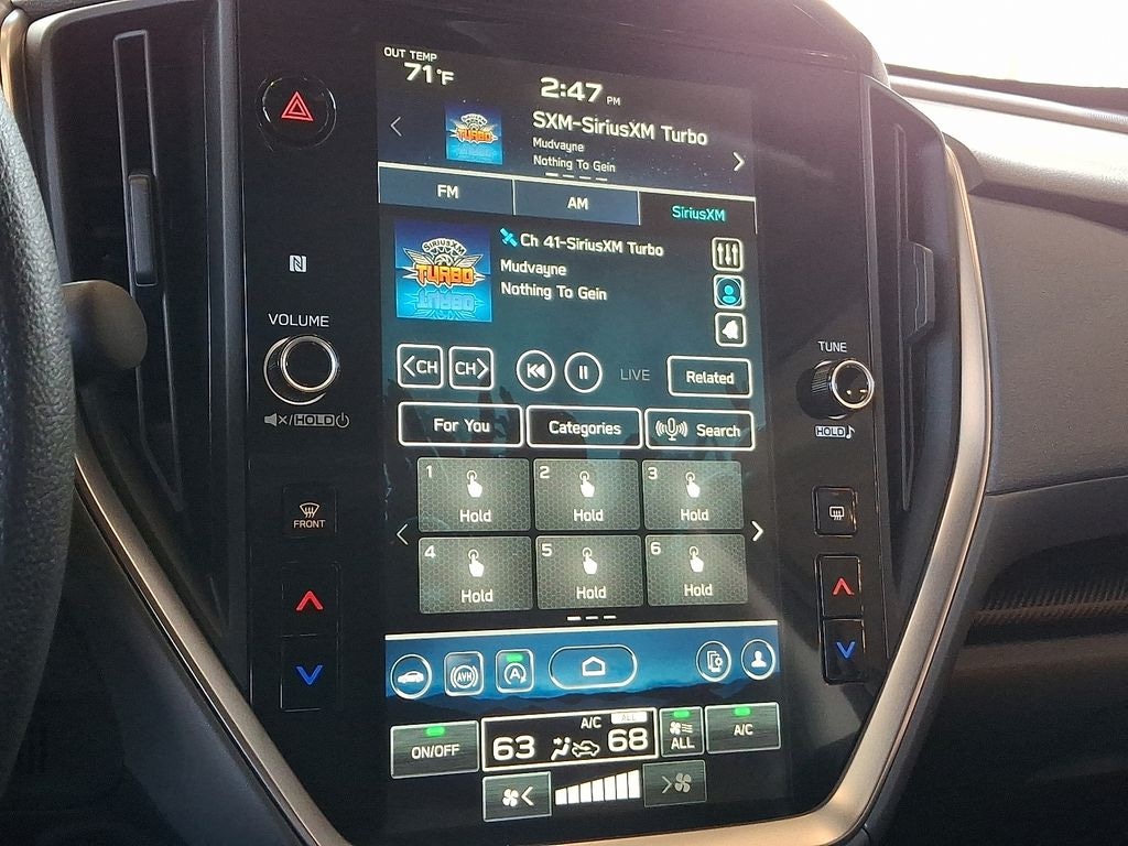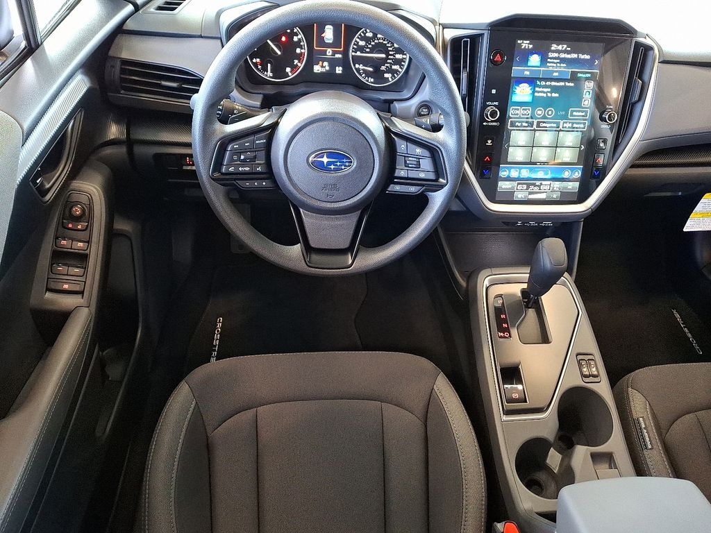 10-Way Power Driver's Seat, 4-Wheel Disc Brakes, 6 Speakers, ABS brakes, Air Conditioning, All-Weather Package, Alloy wheels, AM/FM radio: SiriusXM, Anti-whiplash front head restraints, Auto High-beam Headlights, Auto-Dimming Exterior Mirror w/Approach Light, Auto-Dimming Mirror w/Compass & HomeLink, Automatic temperature control, Blind Spot Detection (BSD), Brake assist, BSD/RCTA & All Wthr Pkg & Pwr Dr. Seat & Pwr Moonrf, Bumpers: body-color, Cargo Cover, Cloth Upholstery, Crosstrek Mirror Package, Driver door bin, Driver vanity mirror, Dual front impact airbags, Dual front side impact airbags, Dual-Mode Heated Front Seats, Electronic Stability Control, Emergency communication system, Exterior Parking Camera Rear, Four wheel independent suspension, Front anti-roll bar, Front Bucket Seats, Front Center Armrest, Front dual zone A/C, Front fog lights, Front reading lights, Fully automatic headlights, Heated Power Exterior Mirrors, Illuminated entry, Knee airbag, Low tire pressure warning, Occupant sensing airbag, Outside temperature display, Overhead airbag, Overhead console, Panic alarm, Passenger door bin, Passenger vanity mirror, Power door mirrors, Power Moonroof, Power steering, Power windows, Radio data system, Radio: Subaru 11.6" Multimedia Plus System, Rear anti-roll bar, Rear Bumper Cover, Rear Cross-Traffic Alert (RCTA) System, Rear seat center armrest, Rear window defroster, Rear window wiper, Remote keyless entry, Security system, Speed control, Speed-sensing steering, Split folding rear seat, Spoiler, Steering wheel mounted audio controls, Tachometer, Telescoping steering wheel, Tilt steering wheel, Traction control, Trip computer, Turn signal indicator mirrors, Variably intermittent wipers, Wheels: 17" x 7.0" J Machine Finish Aluminum-Alloy, Windshield De-Icer Wipers.