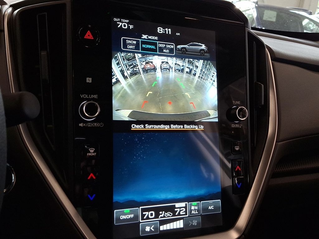 10-Way Power Driver's Seat, 4-Wheel Disc Brakes, 6 Speakers, ABS brakes, Air Conditioning, All-Weather Package, Alloy wheels, AM/FM radio: SiriusXM, Anti-whiplash front head restraints, Auto High-beam Headlights, Auto-Dimming Exterior Mirror w/Approach Light, Auto-Dimming Mirror w/Compass & HomeLink, Automatic temperature control, Blind Spot Detection (BSD), Brake assist, BSD/RCTA & All Wthr Pkg & Pwr Dr. Seat & Pwr Moonrf, Bumpers: body-color, Cargo Cover, Cloth Upholstery, Crosstrek Mirror Package, Driver door bin, Driver vanity mirror, Dual front impact airbags, Dual front side impact airbags, Dual-Mode Heated Front Seats, Electronic Stability Control, Emergency communication system, Exterior Parking Camera Rear, Four wheel independent suspension, Front anti-roll bar, Front Bucket Seats, Front Center Armrest, Front dual zone A/C, Front fog lights, Front reading lights, Fully automatic headlights, Heated Power Exterior Mirrors, Illuminated entry, Knee airbag, Low tire pressure warning, Occupant sensing airbag, Outside temperature display, Overhead airbag, Overhead console, Panic alarm, Passenger door bin, Passenger vanity mirror, Power door mirrors, Power Moonroof, Power steering, Power windows, Radio data system, Radio: Subaru 11.6" Multimedia Plus System, Rear anti-roll bar, Rear Bumper Cover, Rear Cross-Traffic Alert (RCTA) System, Rear seat center armrest, Rear window defroster, Rear window wiper, Remote keyless entry, Security system, Speed control, Speed-sensing steering, Split folding rear seat, Spoiler, Steering wheel mounted audio controls, Tachometer, Telescoping steering wheel, Tilt steering wheel, Traction control, Trip computer, Turn signal indicator mirrors, Variably intermittent wipers, Wheels: 17" x 7.0" J Machine Finish Aluminum-Alloy, Windshield De-Icer Wipers.