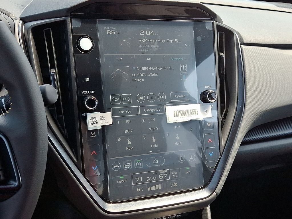 10-Way Power Driver's Seat, 4-Wheel Disc Brakes, 6 Speakers, ABS brakes, Air Conditioning, Alloy wheels, AM/FM radio: SiriusXM, Anti-whiplash front head restraints, Auto High-beam Headlights, Auto-Dimming Exterior Mirror w/Approach Light, Auto-Dimming Mirror w/Compass & HomeLink, Automatic temperature control, Blind Spot Detection (BSD), Brake assist, BSD/RCTA & Power Driver Seat & Power Moonroof, Bumpers: body-color, Crosstrek Mirror Package, Driver door bin, Driver vanity mirror, Dual front impact airbags, Dual front side impact airbags, Electronic Stability Control, Emergency communication system, Exterior Parking Camera Rear, Four wheel independent suspension, Front anti-roll bar, Front Bucket Seats, Front Center Armrest, Front dual zone A/C, Front fog lights, Front reading lights, Fully automatic headlights, Heated door mirrors, Heated Front Bucket Seats, Heated front seats, Illuminated entry, Knee airbag, Leather Shift Knob, Leather steering wheel, LED Upgrade, Low tire pressure warning, Occupant sensing airbag, Outside temperature display, Overhead airbag, Overhead console, Panic alarm, Passenger door bin, Passenger vanity mirror, Power door mirrors, Power Moonroof, Power steering, Power windows, Radio data system, Radio: Subaru 11.6" Multimedia Plus System, Rear anti-roll bar, Rear Bumper Cover, Rear Cross-Traffic Alert (RCTA) System, Rear seat center armrest, Rear window defroster, Rear window wiper, Remote keyless entry, Security system, Speed control, Speed-sensing steering, Split folding rear seat, Spoiler, Sport Cloth Upholstery, Steering wheel mounted audio controls, Tachometer, Telescoping steering wheel, Tilt steering wheel, Traction control, Trip computer, Turn signal indicator mirrors, Variably intermittent wipers, Wheels: 18" x 7.0" J Dark Gray Aluminum-Alloy.