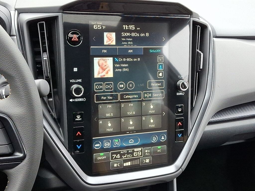 10-Way Power Driver's Seat, 4-Wheel Disc Brakes, 6 Speakers, ABS brakes, Air Conditioning, Alloy wheels, AM/FM radio: SiriusXM, Anti-whiplash front head restraints, Auto High-beam Headlights, Auto-Dimming Exterior Mirror w/Approach Light, Auto-Dimming Mirror w/Compass & HomeLink, Automatic temperature control, Blind Spot Detection (BSD), Brake assist, BSD/RCTA & Power Driver Seat & Power Moonroof, Bumpers: body-color, Crosstrek Mirror Package, Driver door bin, Driver vanity mirror, Dual front impact airbags, Dual front side impact airbags, Electronic Stability Control, Emergency communication system, Exterior Parking Camera Rear, Four wheel independent suspension, Front anti-roll bar, Front Bucket Seats, Front Center Armrest, Front dual zone A/C, Front fog lights, Front reading lights, Fully automatic headlights, Heated door mirrors, Heated Front Bucket Seats, Heated front seats, Illuminated entry, Knee airbag, Leather Shift Knob, Leather steering wheel, LED Upgrade, Low tire pressure warning, Occupant sensing airbag, Outside temperature display, Overhead airbag, Overhead console, Panic alarm, Passenger door bin, Passenger vanity mirror, Power door mirrors, Power Moonroof, Power steering, Power windows, Radio data system, Radio: Subaru 11.6" Multimedia Plus System, Rear anti-roll bar, Rear Bumper Cover, Rear Cross-Traffic Alert (RCTA) System, Rear seat center armrest, Rear Seatback Protector, Rear window defroster, Rear window wiper, Remote keyless entry, Security system, Speed control, Speed-sensing steering, Split folding rear seat, Spoiler, Sport Cloth Upholstery, Steering wheel mounted audio controls, Tachometer, Telescoping steering wheel, Tilt steering wheel, Traction control, Trip computer, Turn signal indicator mirrors, Variably intermittent wipers, Wheels: 18" x 7.0" J Dark Gray Aluminum-Alloy.