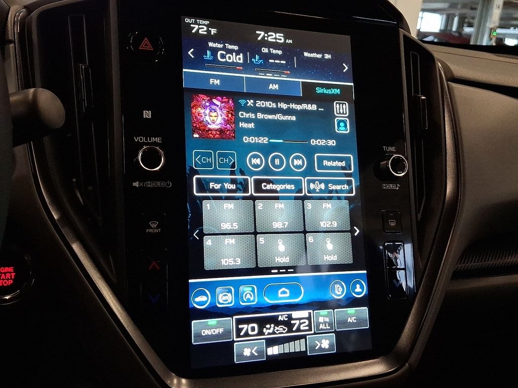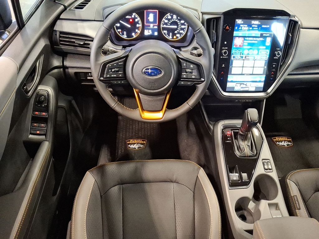 4-Wheel Disc Brakes, 6 Speakers, ABS brakes, Air Conditioning, Alloy wheels, AM/FM radio: SiriusXM, Anti-whiplash front head restraints, Auto High-beam Headlights, Auto-Dimming Exterior Mirror w/Approach Light, Auto-Dimming Mirror w/Compass & HomeLink, Automatic temperature control, Brake assist, Bumpers: body-color, Crosstrek Mirror Package, Driver door bin, Driver vanity mirror, Dual front impact airbags, Dual front side impact airbags, Electronic Stability Control, Emergency communication system, Exterior Parking Camera Rear, Four wheel independent suspension, Front anti-roll bar, Front Bucket Seats, Front Center Armrest, Front dual zone A/C, Front fog lights, Front reading lights, Fully automatic headlights, Heated door mirrors, Heated Front Bucket Seats, Heated front seats, Illuminated entry, Knee airbag, Leather Shift Knob, Leather steering wheel, LED Upgrade, Low tire pressure warning, Occupant sensing airbag, Outside temperature display, Overhead airbag, Overhead console, Panic alarm, Passenger door bin, Passenger vanity mirror, Power door mirrors, Power steering, Power windows, Radio data system, Radio: Subaru 11.6" Multimedia Plus System, Rear anti-roll bar, Rear Bumper Cover - Wilderness, Rear seat center armrest, Rear window defroster, Rear window wiper, Remote keyless entry, Security system, Speed control, Speed-sensing steering, Split folding rear seat, Spoiler, Standard Model, Steering wheel mounted audio controls, Tachometer, Telescoping steering wheel, Tilt steering wheel, Traction control, Trip computer, Turn signal indicator mirrors, Variably intermittent wipers, Wheels: 17" x 7.0" J Matte Black Aluminum-Alloy, Wilderness StarTex Upholstery.