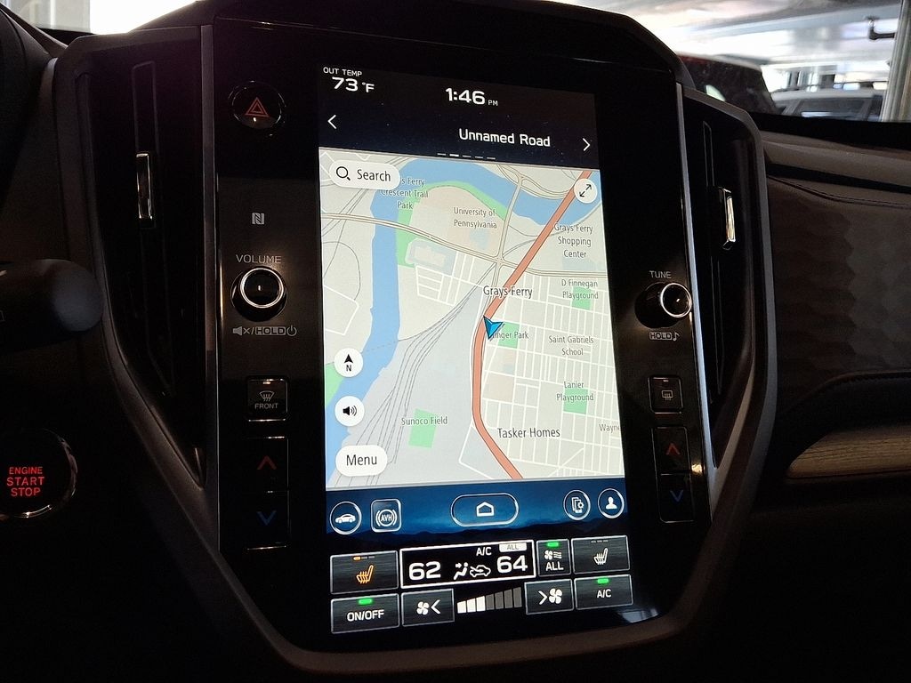 2.5L 4-Cylinder DOHC 16V, 11 Speakers, 4-Wheel Disc Brakes, ABS brakes, Air Conditioning, Alloy wheels, AM/FM radio: SiriusXM with 360L, Anti-whiplash front head restraints, Auto High-beam Headlights, Auto-Dimming Exterior Mirror w/Approach Light, Auto-Dimming Mirror w/Compass & HomeLink, Automatic temperature control, Brake assist, Bumpers: body-color, Compass, Driver door bin, Driver vanity mirror, Dual front impact airbags, Dual front side impact airbags, Electronic Stability Control, Emergency communication system: MySubaru Safety (3-year free trial), Exterior Parking Camera Rear, Four wheel independent suspension, Front anti-roll bar, Front Bucket Seats, Front Center Armrest, Front dual zone A/C, Front fog lights, Front reading lights, Fully automatic headlights, harman/kardon® Speakers, Heated door mirrors, Heated Front Bucket Seats, Heated front seats, Illuminated entry, Knee airbag, Low tire pressure warning, Navigation system: TomTom Navigation w/what3words, Occupant sensing airbag, Outside temperature display, Overhead airbag, Overhead console, Panic alarm, Passenger door bin, Passenger vanity mirror, Power door mirrors, Power driver seat, Power Liftgate, Power moonroof: Panoramic, Power passenger seat, Power steering, Power windows, Radio data system, Radio: Subaru 11.6" Multimedia Navigation System, Rear anti-roll bar, Rear Bumper Cover, Rear seat center armrest, Rear window defroster, Rear window wiper, Remote keyless entry, Security system, Speed control, Speed-sensing steering, Splash Guards, Split folding rear seat, Spoiler, Standard Model, StarTex Upholstery, Steering wheel mounted audio controls, Tachometer, Telescoping steering wheel, Tilt steering wheel, Traction control, Trip computer, Turn signal indicator mirrors, Variably intermittent wipers, Wheels: 18" x 7.0 J Dark Metallic Aluminum-Alloy, 2.5L 4-Cylinder DOHC 16V.