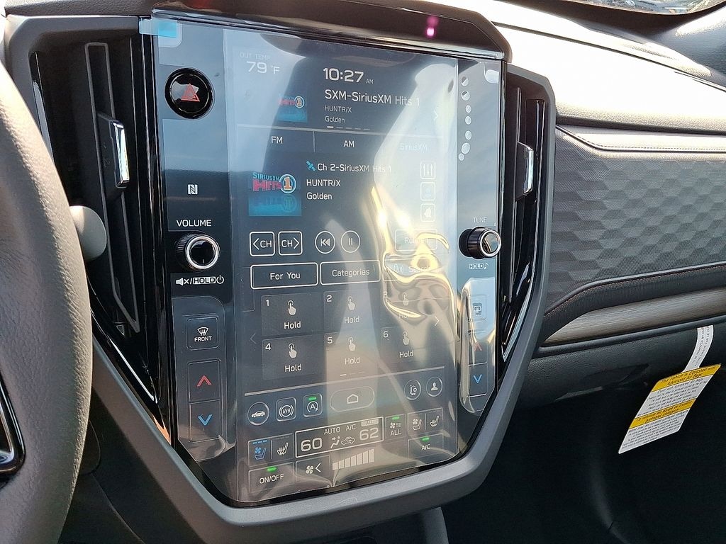 11 Speakers, 4-Wheel Disc Brakes, ABS brakes, Air Conditioning, All-Weather Floor Liners, Alloy wheels, AM/FM radio: SiriusXM with 360L, Anti-whiplash front head restraints, Auto High-beam Headlights, Auto-Dimming Exterior Mirror w/Approach Light, Automatic temperature control, Brake assist, Bumpers: body-color, Cargo Sidewall Protector, Cargo Tray, Driver door bin, Driver vanity mirror, Dual front impact airbags, Dual front side impact airbags, Electronic Stability Control, Emergency communication system: MySubaru Safety (3-year free trial), Exterior Parking Camera Rear, Four wheel independent suspension, Front anti-roll bar, Front Bucket Seats, Front Center Armrest, Front dual zone A/C, Front fog lights, Front reading lights, Fully automatic headlights, harman/kardon® Speakers, Heated & Ventilated Front Bucket Seats, Heated door mirrors, Heated front seats, Heated rear seats, Heated steering wheel, HVAC memory, Illuminated entry, Knee airbag, Leather steering wheel, LED Upgrade, Low tire pressure warning, Memory seat, Navigation System, Occupant sensing airbag, Outside temperature display, Overhead airbag, Overhead console, Panic alarm, Passenger door bin, Passenger vanity mirror, Perforated Leather-Trimmed Upholstery, Popular Package - Touring, Power door mirrors, Power driver seat, Power Liftgate, Power moonroof: Panoramic, Power passenger seat, Power steering, Power windows, Radio data system, Radio: Subaru 11.6" Multimedia Navigation System, Rear anti-roll bar, Rear Bumper Cover, Rear seat center armrest, Rear Seatback Protector, Rear window defroster, Rear window wiper, Remote keyless entry, Security system, Speed control, Speed-sensing steering, Splash Guards, Split folding rear seat, Spoiler, Standard Model, Steering wheel mounted audio controls, Tachometer, Telescoping steering wheel, Tilt steering wheel, Traction control, Trip computer, Turn signal indicator mirrors, Variably intermittent wipers, Ventilated front seats, Wheels: 19" x 7.5 J Dark Gray Aluminum-Alloy.