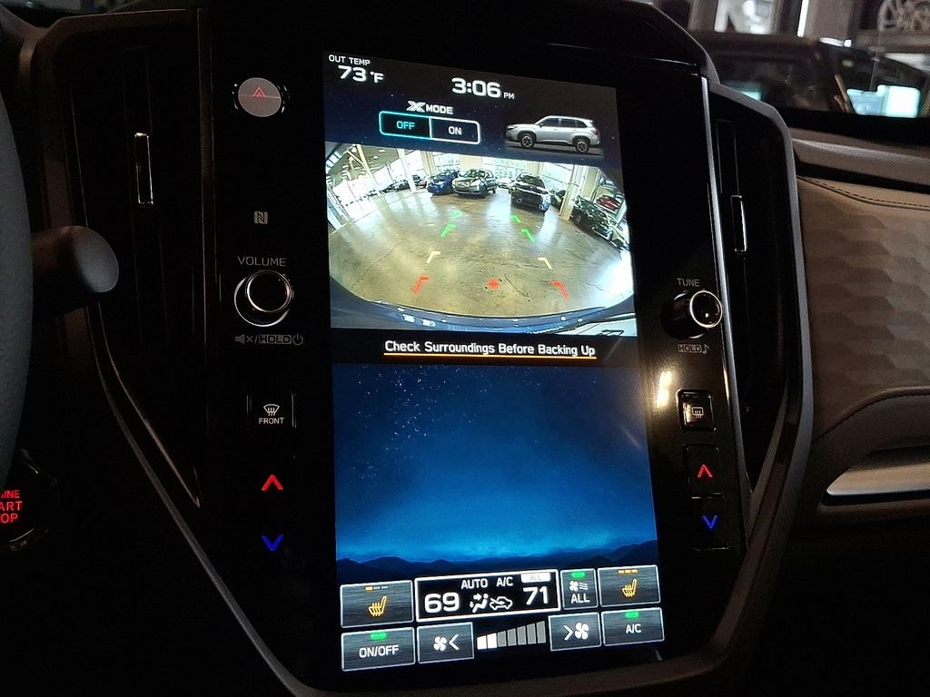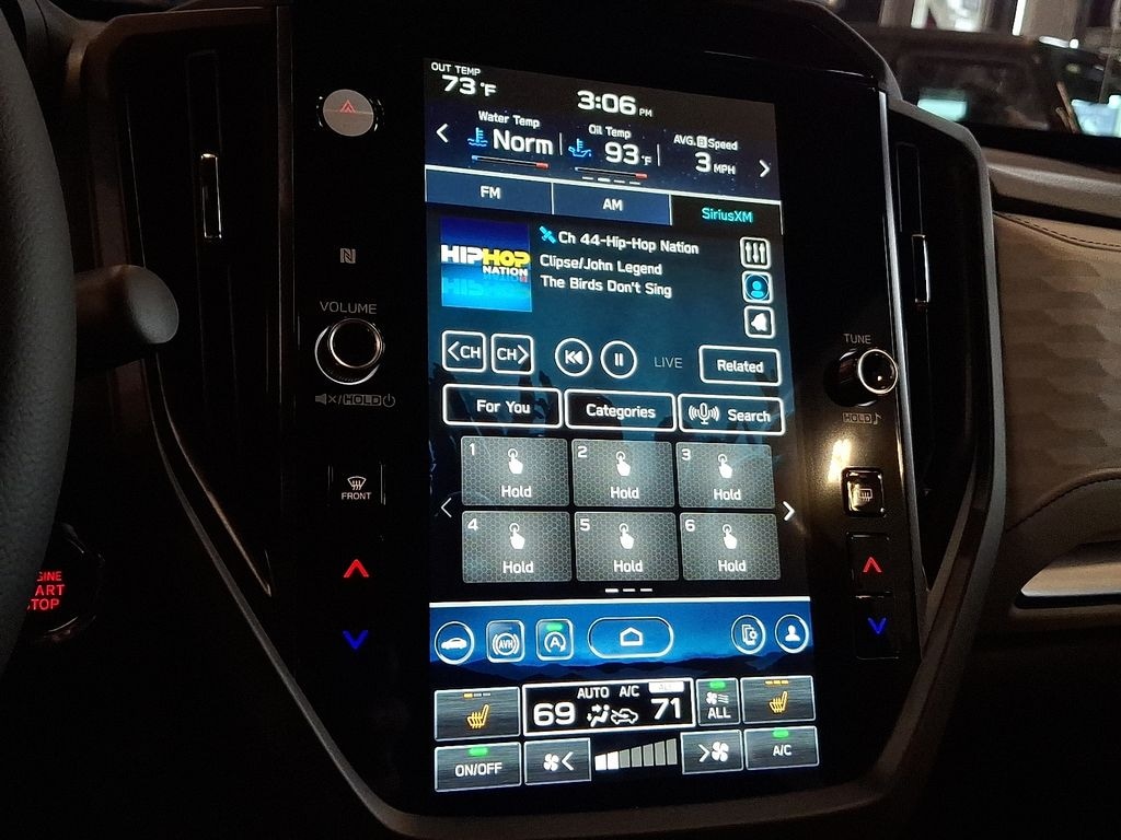 4-Wheel Disc Brakes, 6 Speakers, ABS brakes, Air Conditioning, Alloy wheels, AM/FM radio: SiriusXM with 360L, Anti-whiplash front head restraints, Auto High-beam Headlights, Auto-Dimming Exterior Mirror w/Approach Light, Auto-Dimming Mirror w/Compass & HomeLink, Automatic Emergency Steering, Automatic temperature control, Blind-Spot Detection (BSD)/RCTA System, Brake assist, Bumpers: body-color, Driver door bin, Driver vanity mirror, Dual front impact airbags, Dual front side impact airbags, Electronic Stability Control, Emergency communication system: MySubaru Safety (3-year free trial), Exterior Parking Camera Rear, Four wheel independent suspension, Front anti-roll bar, Front Bucket Seats, Front Center Armrest, Front dual zone A/C, Front fog lights, Front reading lights, Fully automatic headlights, Heated door mirrors, Heated Front Bucket Seats, Heated front seats, Illuminated entry, Knee airbag, Leather steering wheel, LED Upgrade, Low tire pressure warning, Occupant sensing airbag, Outside temperature display, Overhead airbag, Overhead console, Panic alarm, Passenger door bin, Passenger vanity mirror, Power door mirrors, Power driver seat, Power moonroof: Panoramic, Power Rear Gate, Power Rear Gate & Blind Spot Detection w/RCTA, Power steering, Power windows, Premium Textured Cloth Upholstery, Radio data system, Radio: Subaru 11.6" Multimedia Plus System, Rear anti-roll bar, Rear seat center armrest, Rear window defroster, Rear window wiper, Remote keyless entry, Security system, Speed control, Speed-sensing steering, Split folding rear seat, Spoiler, Steering wheel mounted audio controls, Tachometer, Telescoping steering wheel, Tilt steering wheel, Traction control, Trip computer, Variably intermittent wipers, Wheels: 17" x 7.0 J Dark Metallic Aluminum-Alloy.