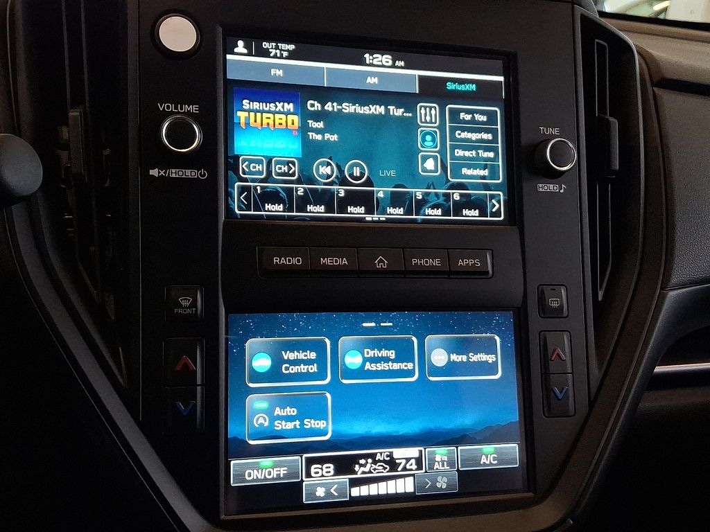 4 Speakers, 4-Wheel Disc Brakes, ABS brakes, Air Conditioning, Alloy Wheels, AM/FM radio: SiriusXM, Anti-whiplash front head restraints, Auto High-beam Headlights, Auto-Dimming Exterior Mirror w/Approach Light, Auto-Dimming Mirror w/Compass & HomeLink, Automatic temperature control, Brake assist, Bumpers: body-color, Cloth Upholstery, Driver door bin, Driver vanity mirror, Dual front impact airbags, Dual front side impact airbags, Electronic Stability Control, Exterior Parking Camera Rear, Four wheel independent suspension, Front anti-roll bar, Front Bucket Seats, Front Center Armrest, Front dual zone A/C, Front reading lights, Fully automatic headlights, Illuminated entry, Knee airbag, Low tire pressure warning, Occupant sensing airbag, Outside temperature display, Overhead airbag, Overhead console, Panic alarm, Passenger door bin, Passenger vanity mirror, Power door mirrors, Power steering, Power windows, Radio data system, Radio: Subaru Dual 7" Multimedia System, Rear Bumper Applique, Rear window defroster, Rear window wiper, Remote keyless entry, Security system, Speed control, Speed-sensing steering, Split folding rear seat, Spoiler, Steering wheel mounted audio controls, Tachometer, Telescoping steering wheel, Tilt steering wheel, Traction control, Trip computer, Variably intermittent wipers, Wheels: 16" x 6.0" 1/2J Silver Aluminum Alloy, Wheels: 16" x 6.0" 1/2J Steel w/Full Cap.