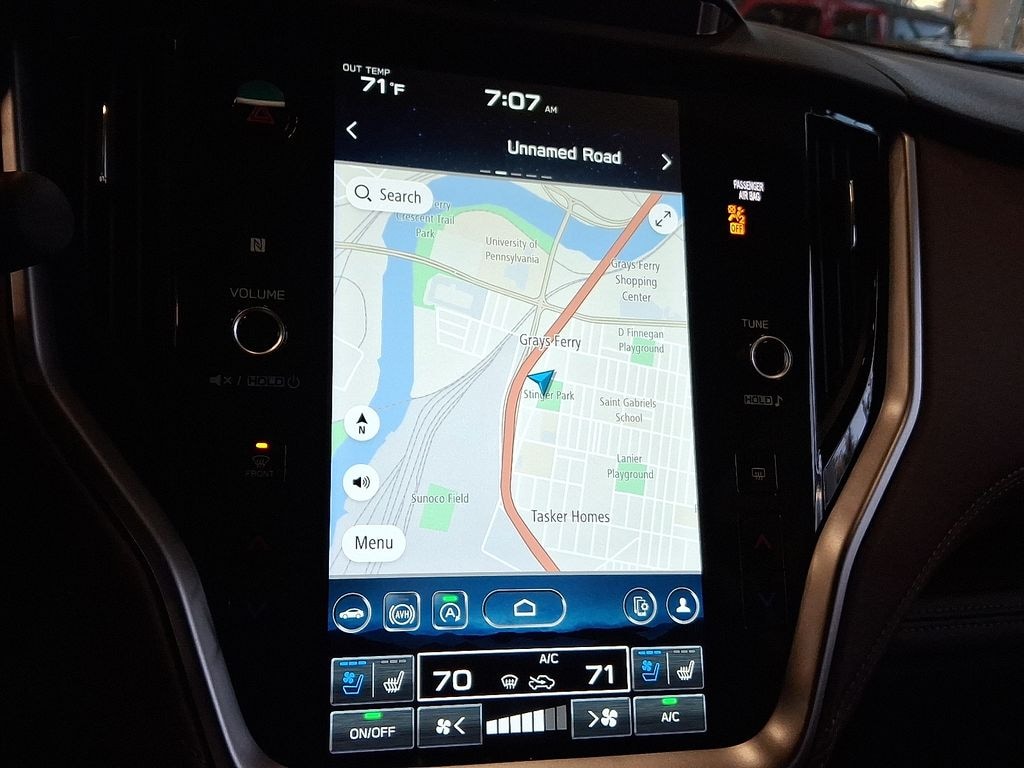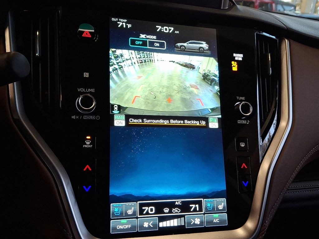 12 Speakers, 4-Wheel Disc Brakes, ABS brakes, Air Conditioning, Alloy wheels, AM/FM radio: SiriusXM with 360L, Apple CarPlay & Android Auto, Auto High-beam Headlights, Auto-Dimming Exterior Mirror w/Approach Light, Auto-dimming Rear-View mirror, Automatic temperature control, Brake assist, Bumpers: body-color, Compass, Driver door bin, Driver vanity mirror, Dual front impact airbags, Dual front side impact airbags, Electronic Stability Control, Emergency communication system: MySubaru Safety (3-year free trial), Exterior Parking Camera Rear, Four wheel independent suspension, Front anti-roll bar, Front Bucket Seats, Front Center Armrest w/Storage, Front dual zone A/C, Front fog lights, Front reading lights, Fully automatic headlights, Garage door transmitter: HomeLink, harman/kardon® Speakers, Heated & Ventilated Front Bucket Seats, Heated door mirrors, Heated front seats, Heated rear seats, Heated steering wheel, HVAC memory, Illuminated entry, Knee airbag, Leather Shift Knob, Leather steering wheel, LED Upgrade, Low tire pressure warning, Memory seat, Navigation system: TomTom Navigation w/what3words, Occupant sensing airbag, Outside temperature display, Overhead airbag, Overhead console, Panic alarm, Passenger door bin, Passenger vanity mirror, Perforated Nappa Leather-Trimmed Upholstery, Power door mirrors, Power driver seat, Power Liftgate, Power moonroof, Power passenger seat, Power steering, Power windows, Radio: Subaru 11.6" Multimedia System w/Navigation, Rear anti-roll bar, Rear Bumper Cover, Rear seat center armrest, Rear window defroster, Rear window wiper, Remote CD player, Remote keyless entry, Roof rack, Security system, Speed control, Speed-sensing steering, Splash Guards, Split folding rear seat, Spoiler, Standard Model, Steering wheel mounted audio controls, Tachometer, Telescoping steering wheel, Tilt steering wheel, Traction control, Trip computer, Turn signal indicator mirrors, Variably intermittent wipers, Ventilated front seats, Wheels: 18" x 7J Black Aluminum-Alloy.