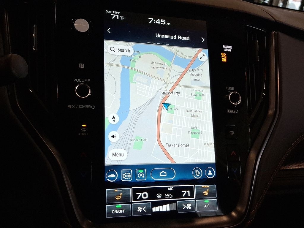 12 Speakers, 4-Wheel Disc Brakes, ABS brakes, Air Conditioning, Alloy wheels, AM/FM radio: SiriusXM with 360L, Apple CarPlay & Android Auto, Auto High-beam Headlights, Auto-Dimming Exterior Mirror w/Approach Light, Auto-dimming Rear-View mirror, Automatic temperature control, Brake assist, Compass, Driver door bin, Driver vanity mirror, Dual front impact airbags, Dual front side impact airbags, Electronic Stability Control, Emergency communication system: MySubaru Safety (3-year free trial), Exterior Parking Camera Rear, Four wheel independent suspension, Front anti-roll bar, Front Bucket Seats, Front Center Armrest w/Storage, Front dual zone A/C, Front fog lights, Front reading lights, Fully automatic headlights, Garage door transmitter: HomeLink, harman/kardon® Speakers, Heated door mirrors, Heated Front Bucket Seats, Heated front seats, Heated rear seats, Heated steering wheel, Illuminated entry, Knee airbag, Leather steering wheel, Low tire pressure warning, Occupant sensing airbag, Outside temperature display, Overhead airbag, Overhead console, Panic alarm, Passenger door bin, Passenger vanity mirror, Power door mirrors, Power driver seat, Power Liftgate, Power Moonroof, Power Moonroof & Navigation & RAB, Power passenger seat, Power steering, Power windows, Radio: Subaru 11.6" Multimedia Plus System, Radio: Subaru 11.6" Multimedia System w/Navigation, Rear anti-roll bar, Rear seat center armrest, Rear window defroster, Rear window wiper, Remote keyless entry, Reverse Automatic Braking (RAB) System, Roof rack, Security system, Speed control, Speed-sensing steering, Splash Guards, Split folding rear seat, Spoiler, StarTex-Trimmed Upholstery, Steering wheel mounted audio controls, Tachometer, Telescoping steering wheel, Tilt steering wheel, Traction control, Trip computer, Turn signal indicator mirrors, Variably intermittent wipers, Wheels: 17" x 7J Matte Black Aluminum-Alloy.