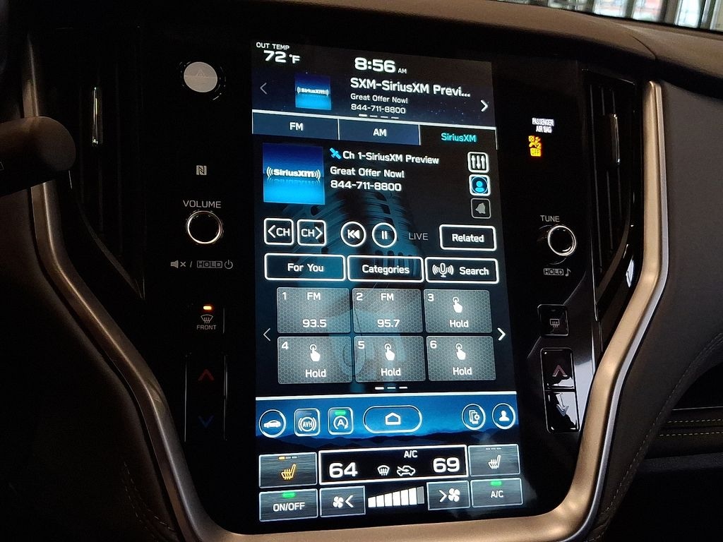 12 Speakers, 4-Wheel Disc Brakes, ABS brakes, Air Conditioning, Alloy wheels, AM/FM radio: SiriusXM with 360L, Apple CarPlay & Android Auto, Auto High-beam Headlights, Auto-Dimming Exterior Mirror w/Approach Light, Auto-dimming Rear-View mirror, Automatic temperature control, Brake assist, Bumpers: body-color, Compass, Driver door bin, Driver vanity mirror, Dual front impact airbags, Dual front side impact airbags, Electronic Stability Control, Emergency communication system: MySubaru Safety (3-year free trial), Exterior Parking Camera Rear, Four wheel independent suspension, Front anti-roll bar, Front Bucket Seats, Front Center Armrest w/Storage, Front dual zone A/C, Front fog lights, Front reading lights, Fully automatic headlights, Garage door transmitter: HomeLink, harman/kardon® Speakers, Heated door mirrors, Heated Front Bucket Seats, Heated front seats, Heated rear seats, Heated steering wheel, Illuminated entry, Knee airbag, Leather Shift Knob, Leather steering wheel, LED Upgrade, Low tire pressure warning, Occupant sensing airbag, Outside temperature display, Overhead airbag, Overhead console, Panic alarm, Passenger door bin, Passenger vanity mirror, Power door mirrors, Power driver seat, Power Liftgate, Power moonroof, Power passenger seat, Power steering, Power windows, Radio: Subaru 11.6" Multimedia Plus System, Rear anti-roll bar, Rear Bumper Cover, Rear seat center armrest, Rear window defroster, Rear window wiper, Remote keyless entry, Roof rack, Security system, Speed control, Speed-sensing steering, Splash Guards, Split folding rear seat, Spoiler, Standard Model, StarTex-Trimmed Upholstery, Steering wheel mounted audio controls, Tachometer, Telescoping steering wheel, Tilt steering wheel, Traction control, Trip computer, Turn signal indicator mirrors, Variably intermittent wipers, Wheels: 18" x 7J Black Aluminum-Alloy.