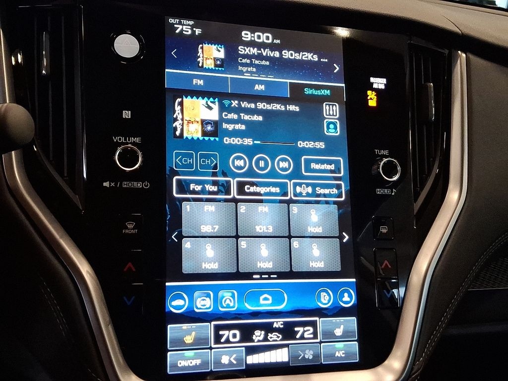 4-Wheel Disc Brakes, 6 Speakers, ABS brakes, Air Conditioning, Alloy wheels, AM/FM radio: SiriusXM with 360L, Apple CarPlay & Android Auto, Auto High-beam Headlights, Auto-Dimming Exterior Mirror w/Approach Light, Auto-Dimming Mirror w/Compass & HomeLink, Automatic temperature control, Brake assist, Bumpers: body-color, Cloth Upholstery, Driver door bin, Driver vanity mirror, Dual front impact airbags, Dual front side impact airbags, Electronic Stability Control, Emergency communication system: MySubaru Safety (3-year free trial), Exterior Parking Camera Rear, Four wheel independent suspension, Front anti-roll bar, Front Bucket Seats, Front Center Armrest w/Storage, Front dual zone A/C, Front fog lights, Front reading lights, Fully automatic headlights, Heated door mirrors, Heated Front Bucket Seats, Heated front seats, Illuminated entry, Knee airbag, Leather Shift Knob, Leather steering wheel, LED Upgrade, Low tire pressure warning, Occupant sensing airbag, Outside temperature display, Overhead airbag, Overhead console, Panic alarm, Passenger door bin, Passenger vanity mirror, Power door mirrors, Power driver seat, Power steering, Power windows, Radio: Subaru 11.6" Multimedia Plus System, Rear anti-roll bar, Rear Bumper Cover, Rear seat center armrest, Rear window defroster, Rear window wiper, Remote keyless entry, Roof rack, Security system, Speed control, Speed-sensing steering, Split folding rear seat, Spoiler, Standard Model, Steering wheel mounted audio controls, Tachometer, Telescoping steering wheel, Tilt steering wheel, Traction control, Trip computer, Turn signal indicator mirrors, Variably intermittent wipers, Wheels: 17" x 7J Black Aluminum-Alloy.