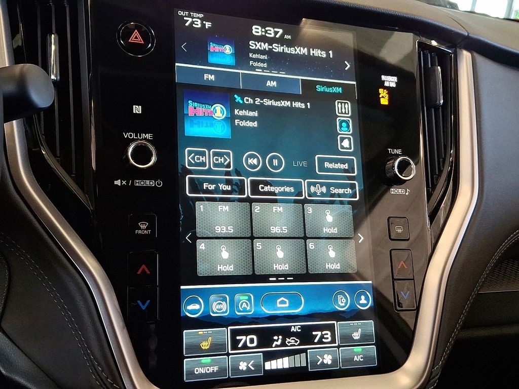 4-Wheel Disc Brakes, 6 Speakers, ABS brakes, Air Conditioning, Alloy wheels, AM/FM radio: SiriusXM with 360L, Apple CarPlay & Android Auto, Auto High-beam Headlights, Auto-Dimming Exterior Mirror w/Approach Light, Auto-Dimming Mirror w/Compass & HomeLink, Automatic temperature control, Blind Spot Detection (BSD), Brake assist, BSD w/RCTA & Keyless Access & Push Button Start, Bumpers: body-color, Cloth Upholstery, Driver door bin, Driver vanity mirror, Dual front impact airbags, Dual front side impact airbags, Electronic Stability Control, Emergency communication system: MySubaru Safety (3-year free trial), Exterior Parking Camera Rear, Four wheel independent suspension, Front anti-roll bar, Front Bucket Seats, Front Center Armrest w/Storage, Front dual zone A/C, Front fog lights, Front reading lights, Fully automatic headlights, Hands-Free Power Rear Gate, Heated door mirrors, Heated Front Bucket Seats, Heated front seats, Illuminated entry, Keyless Access w/Push Button Start, Knee airbag, Leather Shift Knob, Leather steering wheel, Low tire pressure warning, Occupant sensing airbag, Outside temperature display, Overhead airbag, Overhead console, Panic alarm, Passenger door bin, Passenger vanity mirror, Power door mirrors, Power driver seat, Power steering, Power windows, Radio: Subaru 11.6" Multimedia Plus System, Rear anti-roll bar, Rear Bumper Cover, Rear Cross Traffic Alert (RCTA), Rear seat center armrest, Rear window defroster, Rear window wiper, Remote keyless entry, Roof rack, Security system, Speed control, Speed-sensing steering, Splash Guards, Split folding rear seat, Spoiler, Steering wheel mounted audio controls, Tachometer, Telescoping steering wheel, Tilt steering wheel, Traction control, Trip computer, Turn signal indicator mirrors, Variably intermittent wipers, Wheels: 17" x 7J Black Aluminum-Alloy.