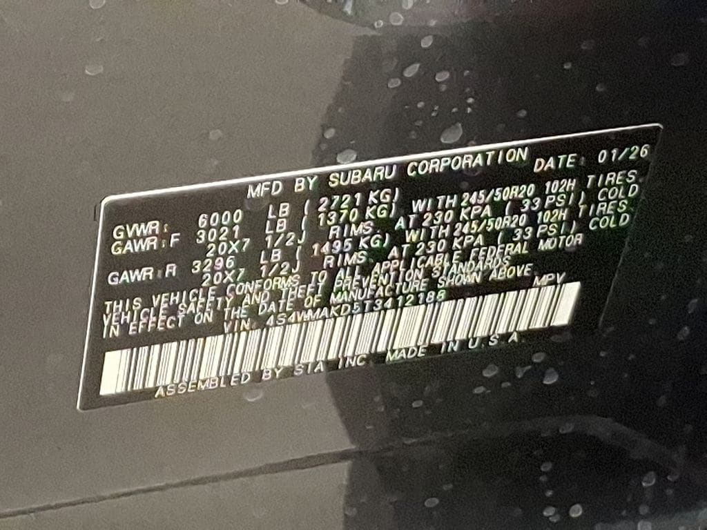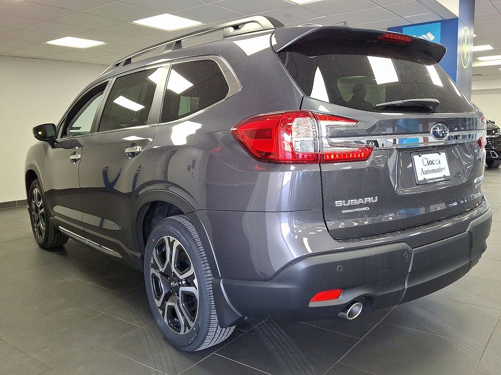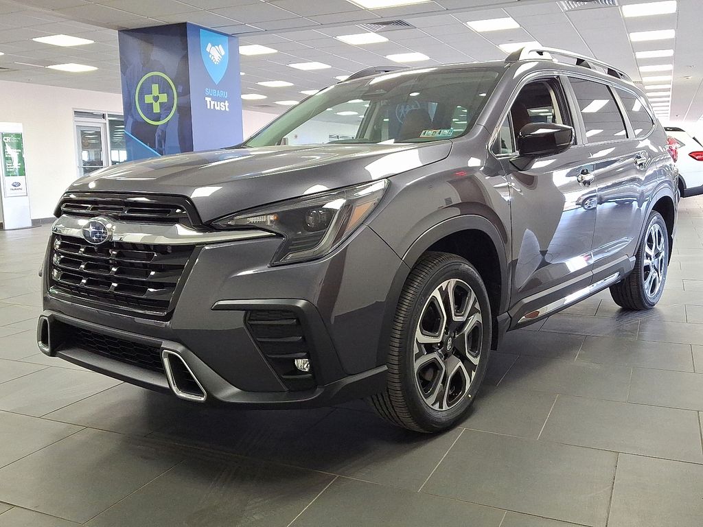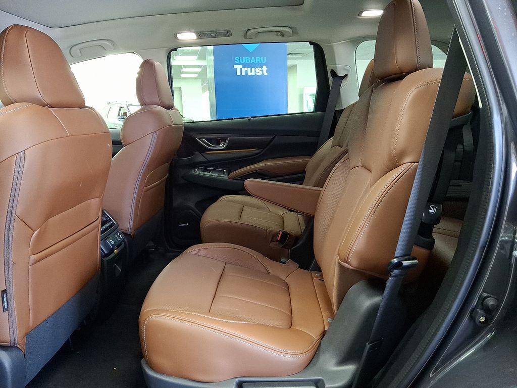 14 Speakers, 3rd Row Bench Rear Seatback Protector, 3rd row seats: bench, 4-Wheel Disc Brakes, ABS brakes, Air Conditioning, Alloy wheels, AM/FM radio: SiriusXM with 360L, Apple CarPlay & Android Auto, Auto High-beam Headlights, Auto-Dimming Exterior Mirror with Approach Light, Auto-dimming Rear-View mirror, Automatic temperature control, Brake assist, Bumpers: body-color, Compass, Delay-off headlights, Driver door bin, Driver vanity mirror, Dual front impact airbags, Dual front side impact airbags, Electronic Stability Control, Emergency communication system: MySubaru Companion (5-years free), Exterior Parking Camera Rear, Four wheel independent suspension, Front anti-roll bar, Front Bucket Seats, Front Center Armrest, Front dual zone A/C, Front fog lights, Front reading lights, Fully automatic headlights, Garage door transmitter: HomeLink, harman/kardon® Speakers, Heated and Ventilated Front Bucket Seats, Heated door mirrors, Heated front seats, Heated rear seats, Heated steering wheel, HVAC memory, Illuminated entry, Knee airbag, Leather Shift Knob, Leather steering wheel, LED Cargo Area Lighting, LED Upgrade, Low tire pressure warning, Memory seat, Navigation system: MySubaru Navigator (1-year trial), Occupant sensing airbag, Outside temperature display, Overhead airbag, Overhead console, Panic alarm, Passenger door bin, Passenger vanity mirror, Perforated Nappa Leather-Trimmed Upholstery, Power door mirrors, Power driver seat, Power Liftgate, Power moonroof, Power passenger seat, Power steering, Power windows, Radio data system, Radio: Subaru 11.6" Multimedia System with Navigation, Rain sensing wipers, Rear air conditioning, Rear anti-roll bar, Rear reading lights, Rear window defroster, Rear window wiper, Reclining 3rd row seat, Remote keyless entry, Security system, Speed control, Speed-sensing steering, Splash Guards, Split folding rear seat, Spoiler, Standard Model, Steering wheel mounted audio controls, Tachometer, Telescoping steering wheel, Tilt steering wheel, Traction control, Trip computer, Turn signal indicator mirrors, Variably intermittent wipers, Ventilated front seats, Wheels: 20" x 7.5 J Dark Gray Alloy with Machine Finish.