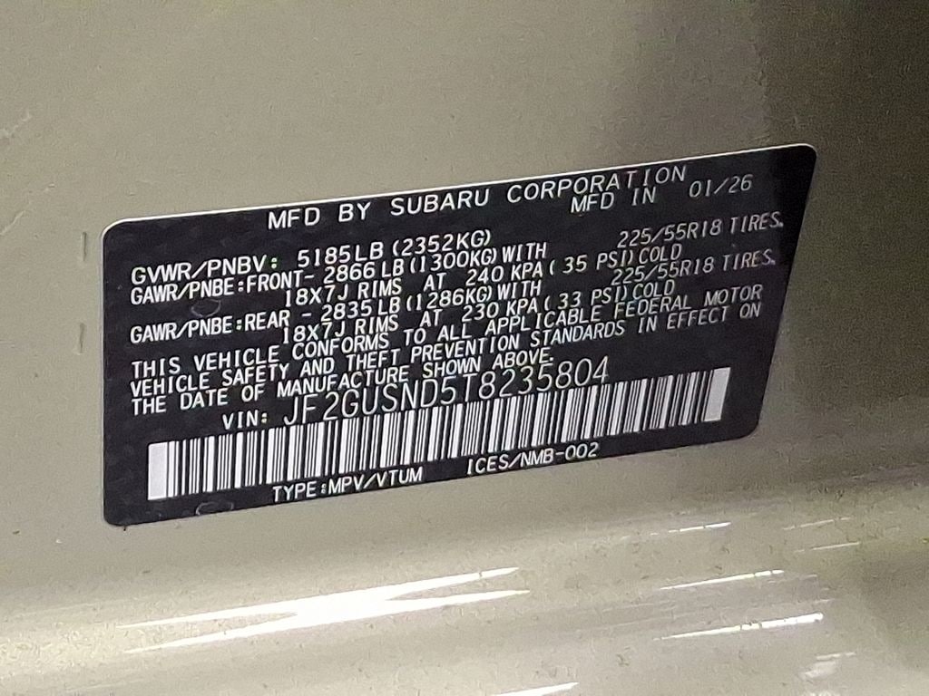 2.5L 4-Cylinder DOHC 16V, 10 Speakers, 360 Surround View Monitor, 4-Wheel Disc Brakes, ABS brakes, Air Conditioning, Alloy wheels, AM/FM radio: SiriusXM, Anti-whiplash front head restraints, Auto High-beam Headlights, Auto-Dimming Exterior Mirror with Approach Light, Auto-Dimming Mirror with Compass and HomeLink, Automatic temperature control, Brake assist, Bumpers: body-color, Compass, Crosstrek Mirror Package, Driver door bin, Driver vanity mirror, Dual front impact airbags, Dual front side impact airbags, Electronic Stability Control, Emergency communication system: MySubaru Companion (5-years free), Exterior Parking Camera Rear, Four wheel independent suspension, Front anti-roll bar, Front Bucket Seats, Front Center Armrest, Front dual zone A/C, Front fog lights, Front reading lights, Fully automatic headlights, harman/kardon® Speakers, Heated door mirrors, Heated Front Bucket Seats, Heated front seats, Heated steering wheel, Illuminated entry, Knee airbag, Leather Shift Knob, Leather steering wheel, Low tire pressure warning, Navigation System, Occupant sensing airbag, Outside temperature display, Overhead airbag, Overhead console, Panic alarm, Passenger door bin, Passenger vanity mirror, Perforated StarTex Upholstery, Power door mirrors, Power driver seat, Power Moonroof, Power Moonroof and Surround View Monitor, Power steering, Power windows, Radio data system, Radio: Subaru 11.6" Multimedia Navigation System, Rear anti-roll bar, Rear seat center armrest, Rear side impact airbag, Rear window defroster, Rear window wiper, Remote keyless entry, Security system, Speed control, Speed-sensing steering, Splash Guards, Split folding rear seat, Spoiler, Steering wheel mounted audio controls, Tachometer, Telescoping steering wheel, Tilt steering wheel, Traction control, Trip computer, Turn signal indicator mirrors, Variably intermittent wipers, Wheels: 18" x 7.0" J Dark Gray Aluminum-Alloy, 2.5L 4-Cylinder DOHC 16V.