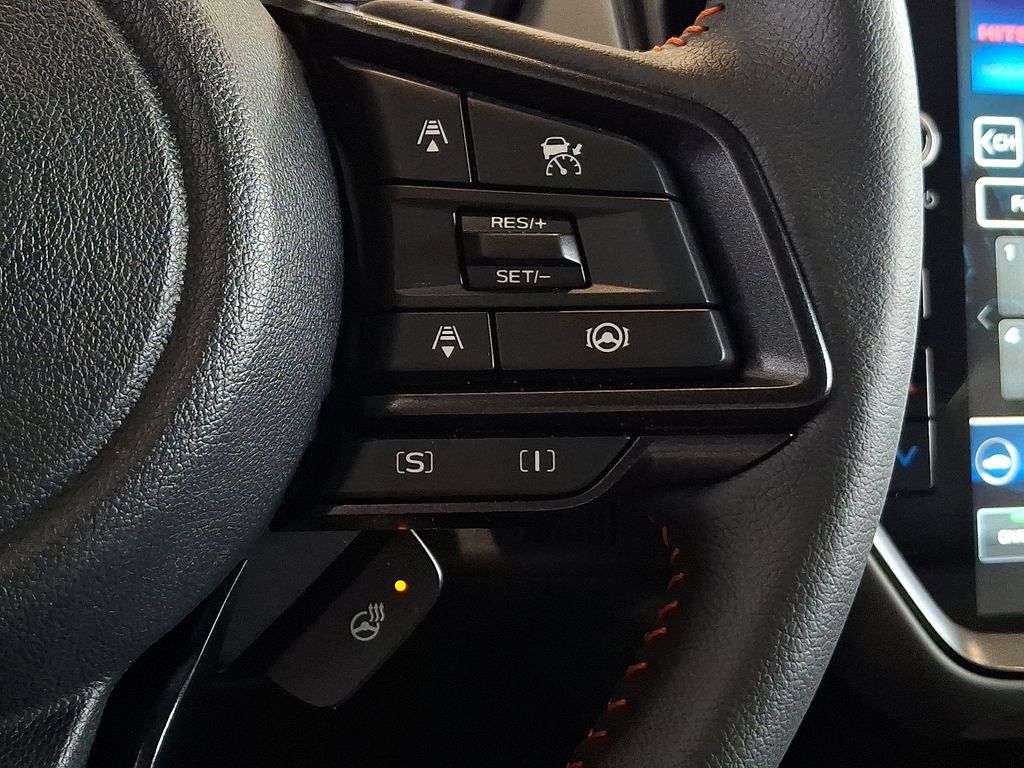 4-Wheel Disc Brakes, 6 Speakers, ABS brakes, Air Conditioning, Alloy wheels, AM/FM radio: SiriusXM with 360L, Anti-whiplash front head restraints, Auto High-beam Headlights, Auto-Dimming Exterior Mirror with Approach Light, Auto-Dimming Mirror with Compass and HomeLink, Automatic temperature control, Brake assist, Bumpers: body-color, Crosstrek Mirror Package, Driver door bin, Driver vanity mirror, Dual front impact airbags, Dual front side impact airbags, Electronic Stability Control, Emergency communication system: MySubaru Companion (5-years free), Exterior Parking Camera Rear, Four wheel independent suspension, Front anti-roll bar, Front Bucket Seats, Front Center Armrest, Front dual zone A/C, Front fog lights, Front reading lights, Fully automatic headlights, Heated door mirrors, Heated Front Bucket Seats, Heated front seats, Heated steering wheel, Illuminated entry, Knee airbag, Leather Shift Knob, Leather steering wheel, Leather-Trimmed Upholstery, LED Upgrade, Low tire pressure warning, Occupant sensing airbag, Outside temperature display, Overhead airbag, Overhead console, Panic alarm, Passenger door bin, Passenger vanity mirror, Power door mirrors, Power driver seat, Power steering, Power windows, Radio data system, Radio: Subaru 11.6" Multimedia Plus System, Rear anti-roll bar, Rear seat center armrest, Rear side impact airbag, Rear window defroster, Rear window wiper, Remote keyless entry, Security system, Speed control, Speed-sensing steering, Split folding rear seat, Spoiler, Standard Model, Steering wheel mounted audio controls, Tachometer, Telescoping steering wheel, Tilt steering wheel, Traction control, Trip computer, Turn signal indicator mirrors, Variably intermittent wipers, Wheels: 18" x 7.0" J Machine Finish Aluminum-Alloy.