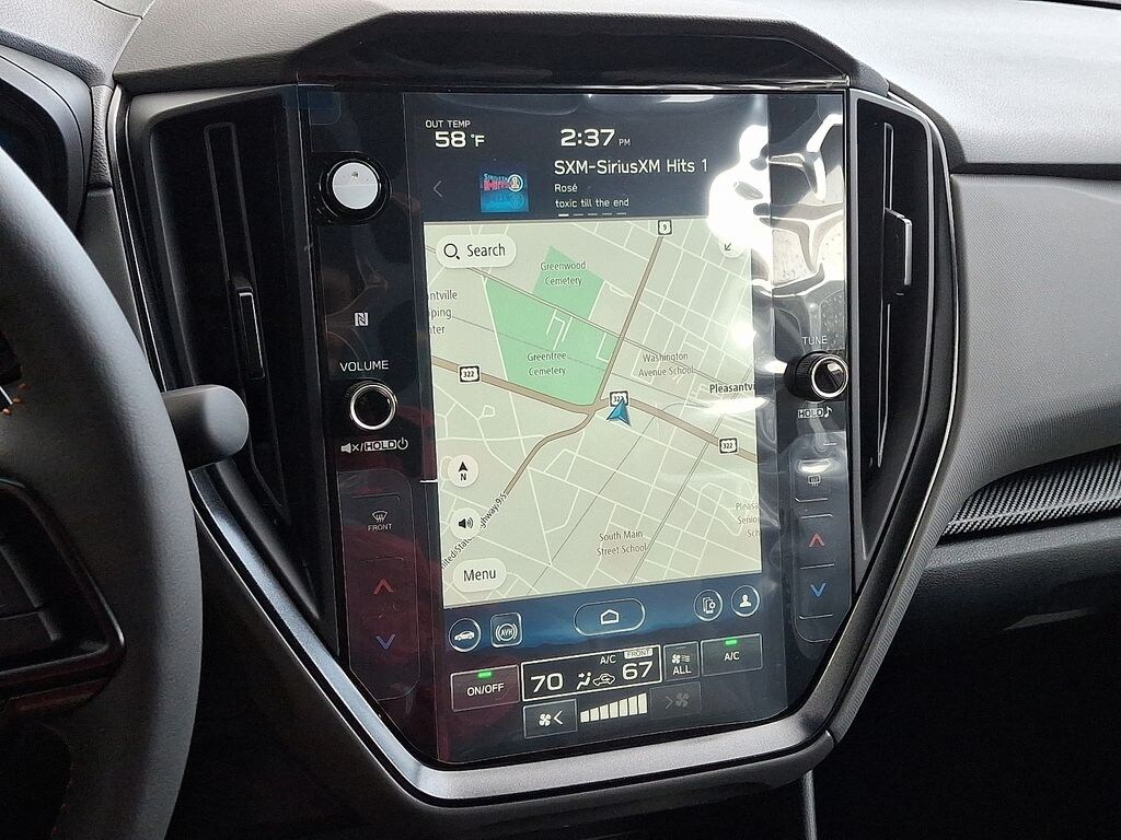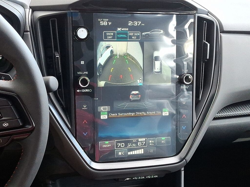 2.5L 4-Cylinder DOHC 16V, 10 Speakers, 4-Wheel Disc Brakes, ABS brakes, Air Conditioning, Alloy wheels, AM/FM radio: SiriusXM, Anti-whiplash front head restraints, Auto High-beam Headlights, Automatic temperature control, Brake assist, Bumpers: body-color, Compass, Driver door bin, Driver vanity mirror, Dual front impact airbags, Dual front side impact airbags, Electronic Stability Control, Emergency communication system: MySubaru Companion (5-years free), Exterior Parking Camera Rear, Four wheel independent suspension, Front anti-roll bar, Front Bucket Seats, Front Center Armrest, Front dual zone A/C, Front fog lights, Front reading lights, Fully automatic headlights, harman/kardon® Speakers, Heated door mirrors, Heated Front Bucket Seats, Heated front seats, Heated steering wheel, Illuminated entry, Knee airbag, Leather Shift Knob, Leather steering wheel, Low tire pressure warning, Navigation System, Occupant sensing airbag, Outside temperature display, Overhead airbag, Overhead console, Panic alarm, Passenger door bin, Passenger vanity mirror, Perforated StarTex Upholstery, Power door mirrors, Power driver seat, Power steering, Power windows, Radio data system, Radio: Subaru 11.6" Multimedia Navigation System, Rear anti-roll bar, Rear seat center armrest, Rear side impact airbag, Rear window defroster, Rear window wiper, Remote keyless entry, Security system, Speed control, Speed-sensing steering, Split folding rear seat, Spoiler, Steering wheel mounted audio controls, Tachometer, Telescoping steering wheel, Tilt steering wheel, Traction control, Trip computer, Turn signal indicator mirrors, Variably intermittent wipers, Wheels: 18" x 7.0" J Dark Gray Aluminum-Alloy, 2.5L 4-Cylinder DOHC 16V.