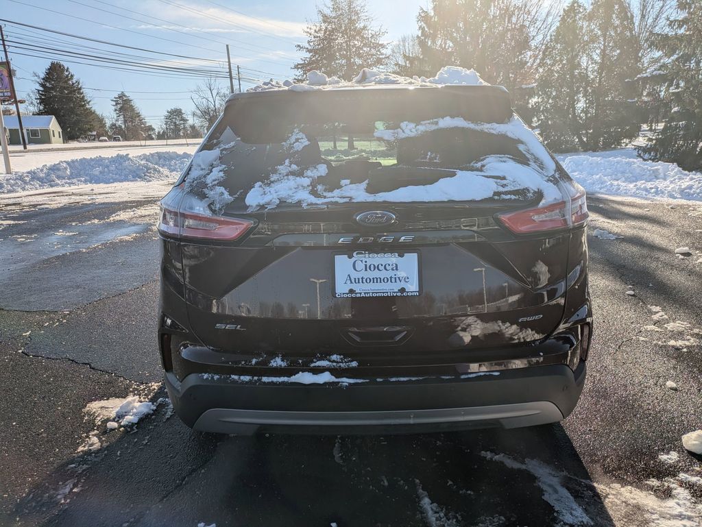 The Edge SEL's standout features include a Power Liftgate, Rear Parking Sensors, and 18" Sparkle Silver-Painted Aluminum Wheels, elevating your driving experience. Step inside and discover the comfort and convenience of the ActiveX Trimmed Heated Bucket Seats, Leather-Wrapped Steering Wheel, and Dual-Zone Automatic Climate Control.