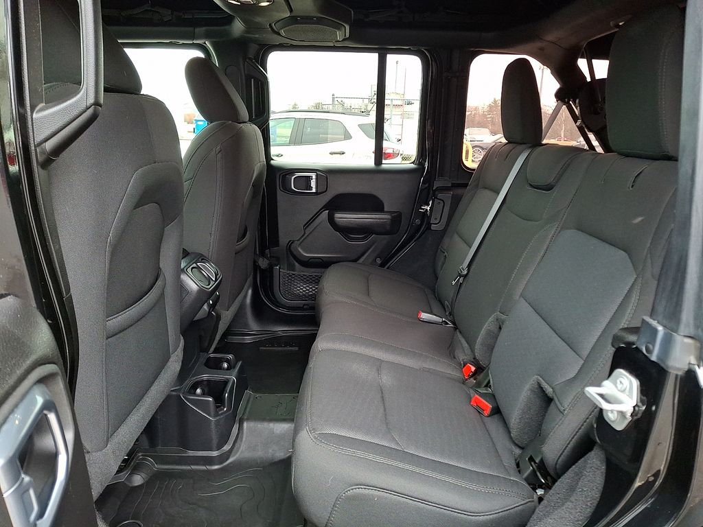 110 MPH Vehicle Max Speed Calibration, 3.45 Rear Axle Ratio, 4-Wheel Disc Brakes, 4-Wheel Drive Swing Gate Decal, 8 Speakers, 97 MPH Vehicle Max Speed Calibration, ABS brakes, Air Conditioning, AM/FM radio, Anti-Spin Differential Rear Axle, Apple CarPlay/Android Auto, Automatic Headlamps, Aux Battery, Black Grille, Black Trail Rated Badge, Blind Spot & Cross Path Detection, Brake assist, Cloth Low-Back Bucket Seats, Cold Weather Group, Compass, Convenience Group, Deep Tint Sunscreen Windows, Delay-off headlights, Driver door bin, Driver vanity mirror, Dual front impact airbags, Dual front side impact airbags, Electronic Stability Control, Emergency communication system: SiriusXM Guardian, Engine Oil Cooler, Front 1-Touch Down Power Windows, Front anti-roll bar, Front Bucket Seats, Front Center Armrest w/Storage, Front fog lights, Front LED Fog Lamps, Front reading lights, Heated Front Seats, Heated Steering Wheel, Injection Molded Black Rear Bumper, Integrated roll-over protection, Leather Wrapped Steering Wheel, LED Headlamp & Fog Lamp Group, LED Premium Reflector Headlamps, LED Taillamps, Low tire pressure warning, Matte Black Jeep Badge, Mold In Color Bumper w/Gloss Black, MOPAR All-Weather Floor Mats, MOPAR Grab Handle Kit, Non-Lock Fuel Cap w/o Discriminator, Normal Duty Suspension, Occupant sensing airbag, Outside temperature display, ParkSense Rear Park Assist System, ParkView Rear Back-Up Camera, Passenger door bin, Passenger vanity mirror, Power Heated Mirrors, Power steering, Premium Black Sunrider Soft Top, Quick Order Package 23W Willys, Quick Order Package 25W Willys, Radio data system, Radio: Uconnect 4 w/7" Display, Rear anti-roll bar, Rear reading lights, Remote Keyless Entry, Safety Group, Security Alarm, Speed control, Speed Sensitive Power Locks, Split folding rear seat, Steering wheel mounted audio controls, Stop-Start Dual Battery System, Sun Visors w/Illuminated Vanity Mirrors, Tachometer, Telescoping steering wheel, Tilt steering wheel, Traction control, Trip computer, Universal Garage Door Opener, Variably intermittent wipers, Wheels: 17" x 7.5" Black Steel Styled, Wheels: 17" x 7.5" Moab Black Aluminum, Willys, Willys Hood Decal.