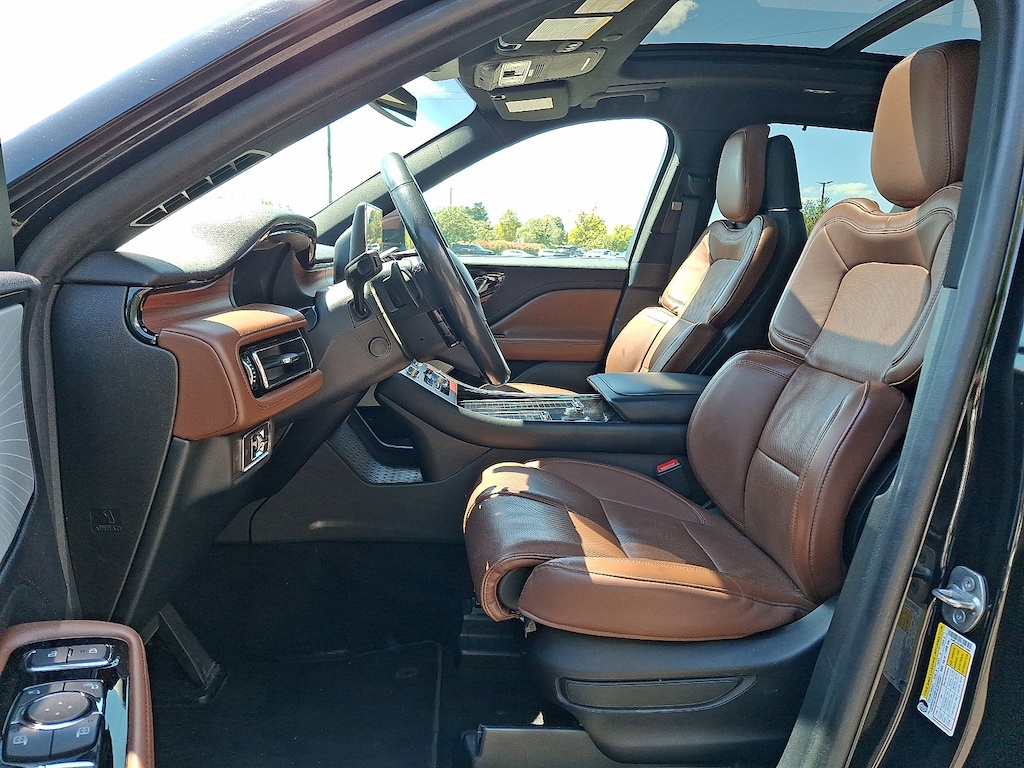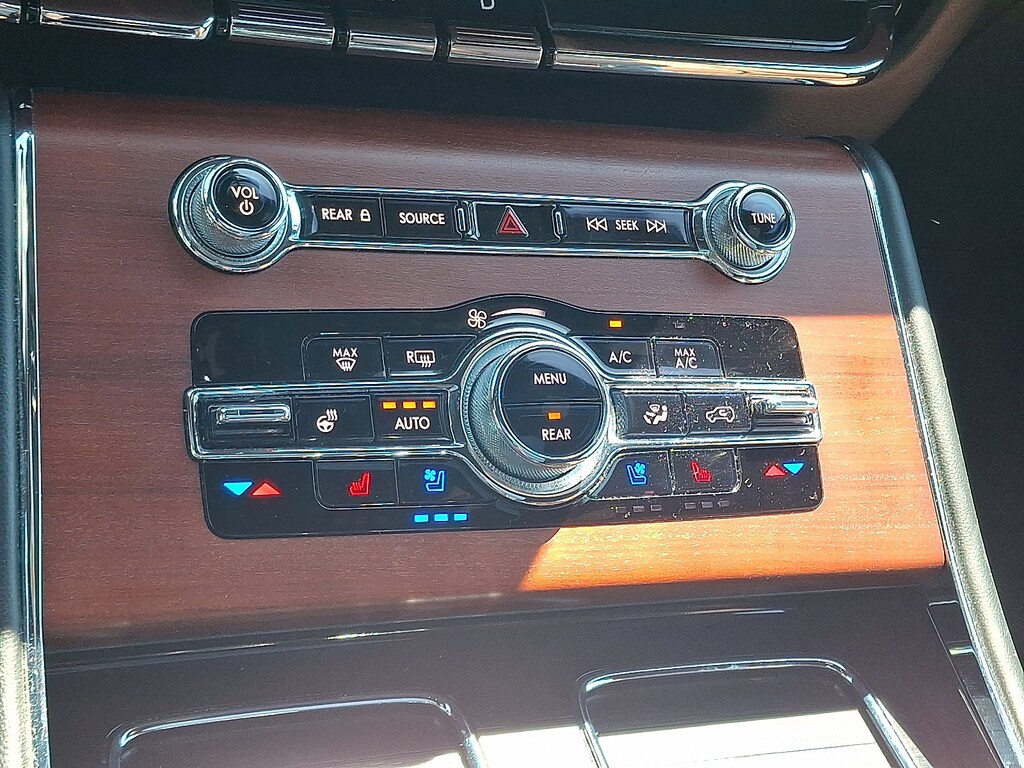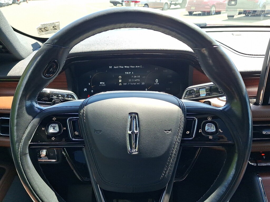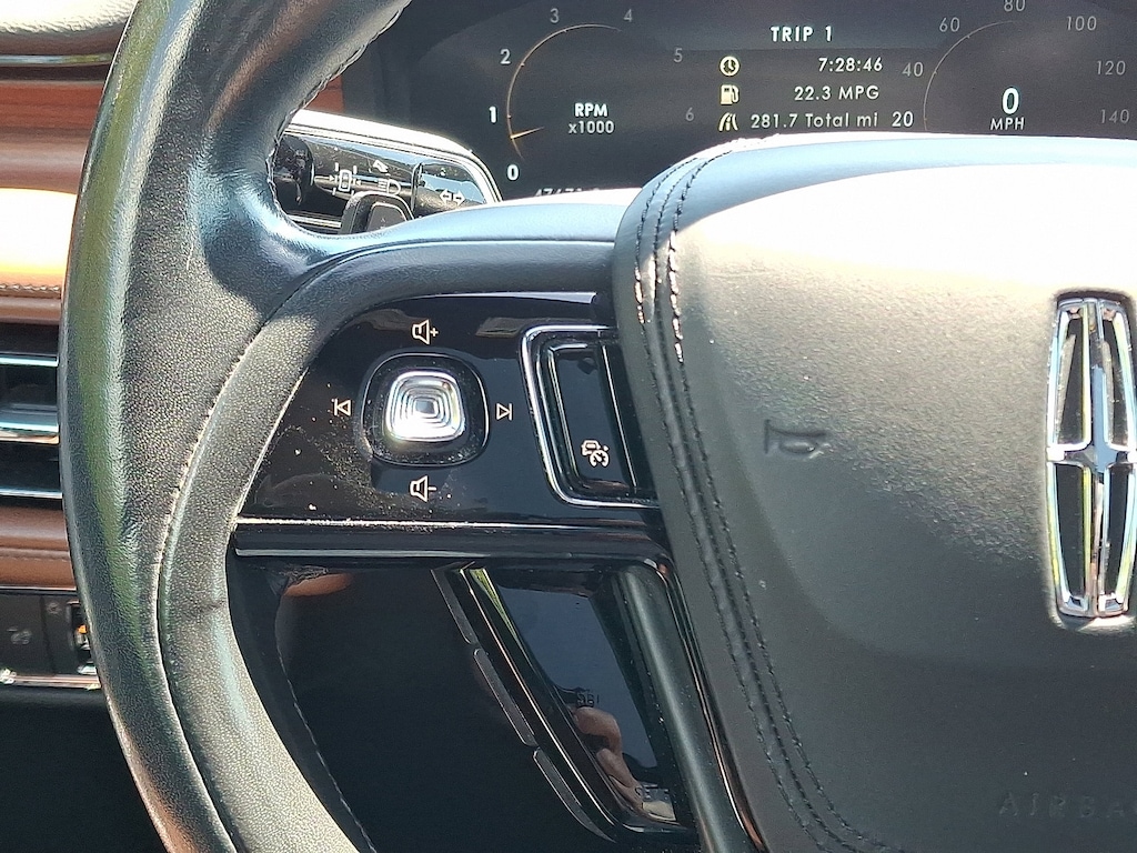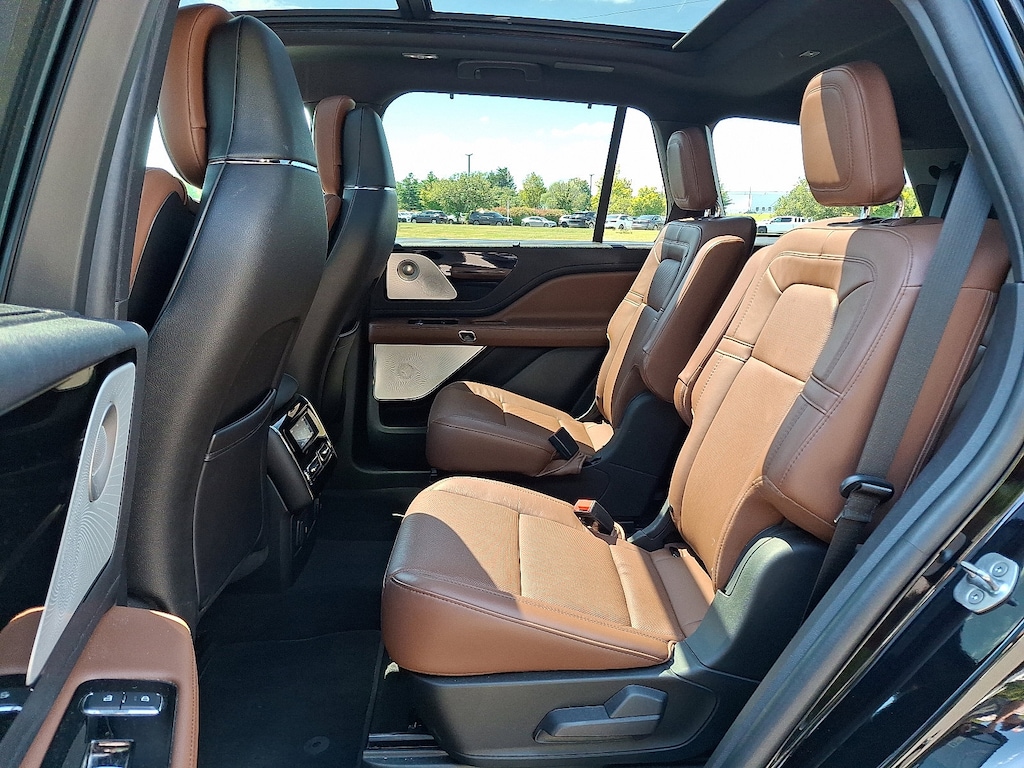 EQUIPMENT GROUP 201A Lincoln Co-Pilot360 1.5 Plus, front/side/rear parking sensors, Evasive Steering Assist, Reverse Brake Assist, Intelligent Adaptive Cruise Control, lane centering assist, stop-and-go and speed sign recognition, Active Park Assist 2.0, Elements Package Plus, Auto Air Refresh, active air monitoring system, Heated/Ventilated 2nd Row Outboard Seats, Heated Steering Wheel, Auto Heated/Ventilated Driver & Passenger Seats, Heated VisioBlade Wipers, Head-Up Display, Phone As A Key, Note: Phone as a key is not compatible w/fleet vehicles equipped w/fleet telematics, LUXURY PACKAGE Rear Door Sunshades, 30-Way Perfect Position Seats w/Active Motion, power thigh extender and head restraints, Radio: Revel Ultima 3D Audio System w/28 Speakers, subwoofer and QuantumLogic 3D Surround technology, TRANSMISSION: 10-SPEED AUTOMATIC W/SELECTSHIFT (STD). Lincoln Reserve with Infinite Black exterior and Ebony/Roast interior features a V6 Cylinder Engine with 400 HP at 5500 RPM*.