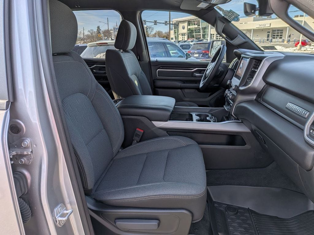 This one-owner truck also boasts a host of advanced safety and technology features, including an auto-dimming exterior driver's mirror, 4G LTE Wi-Fi hotspot, and in-floor storage bins for your gear. The Big Horn/Lone Star package adds even more value, with chrome exterior accents, fog lamps, and a class IV receiver hitch.